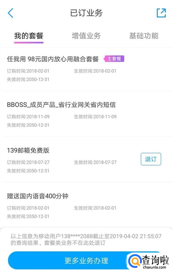 中国移动客户端退订业务