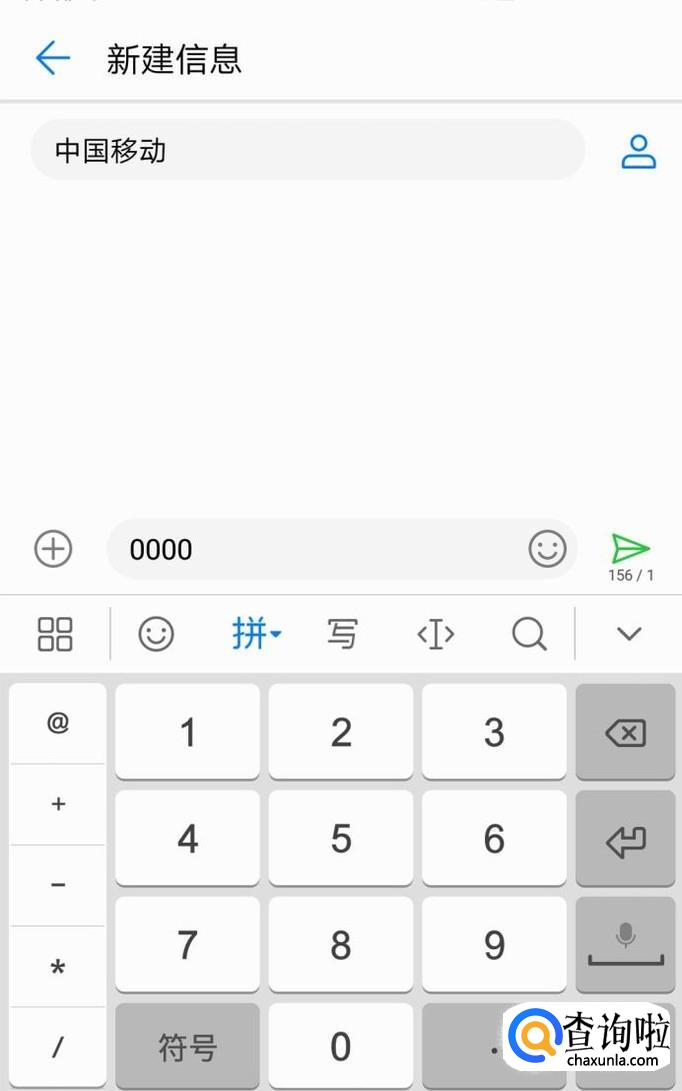 打开手机短信进入,然后编辑短信“0000”发送到“10086”。