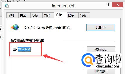 进入连接页面后,在“拨号和虚拟专用网络设置”一栏下找到【宽带连接】,双击它。