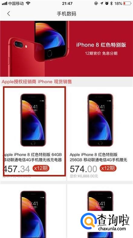 然后点击一个我们想要购买的手机型号,如下图所示。
