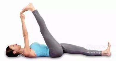 拉伸双腿是把腿打直后用手去抓脚掌,躺在床上做几组这个动作,有利于腿型的塑造哦,像下图这样。