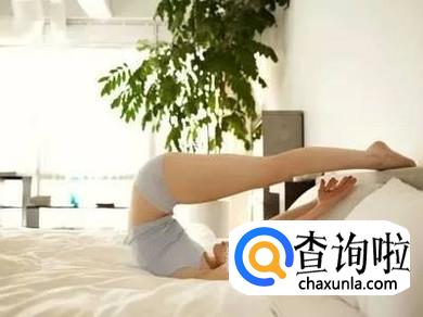 平躺身子双腿往后压,压到极限为止,双手去够脚踝,这个动作在床上就直接轻易完成了,锻炼腰部力量。