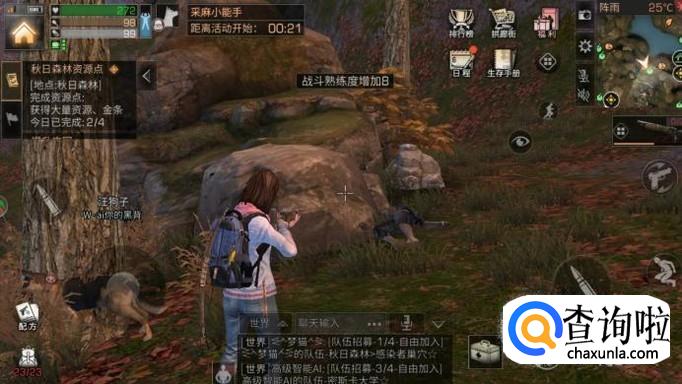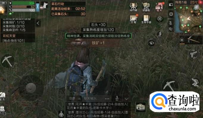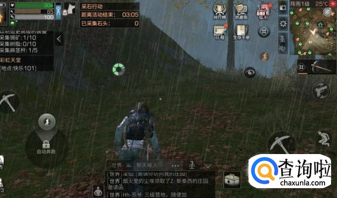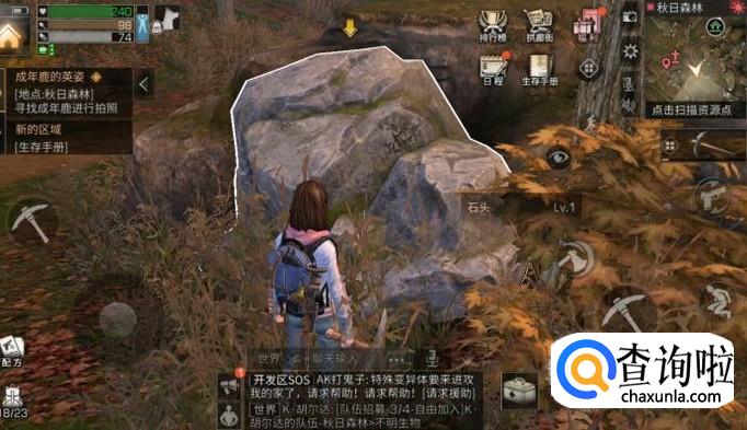 根据右上角的小地图可以查看石头所在位置,然后操控游戏角色前往石头所在地,进行燧石的采集。