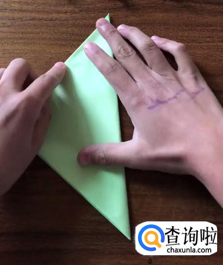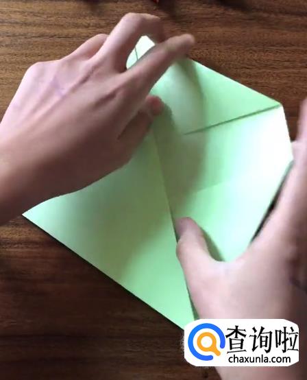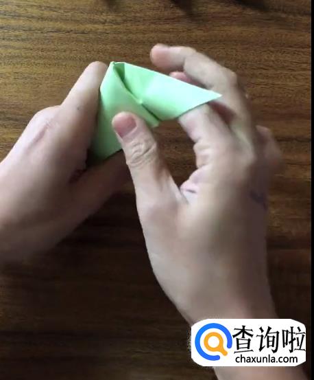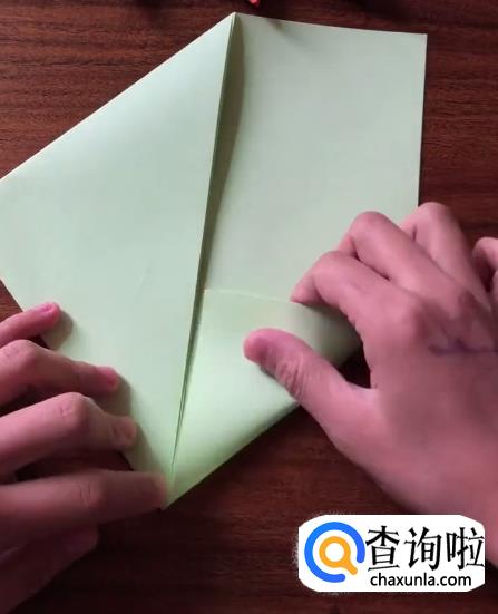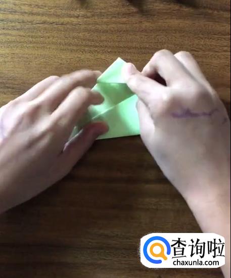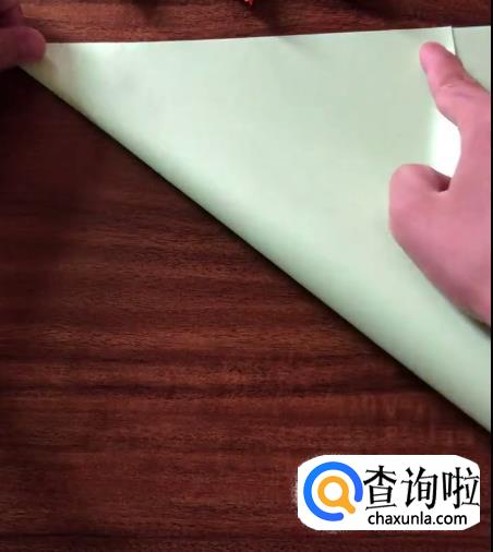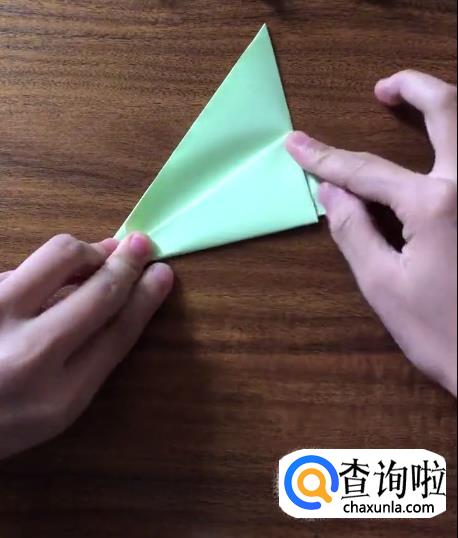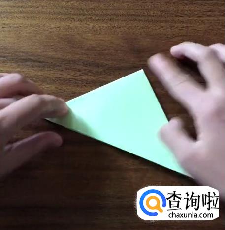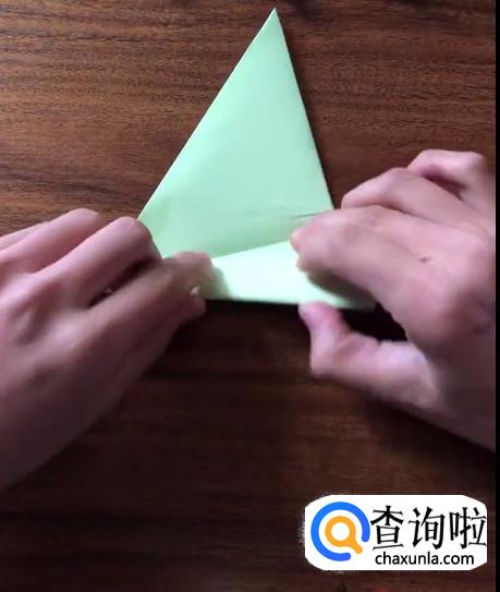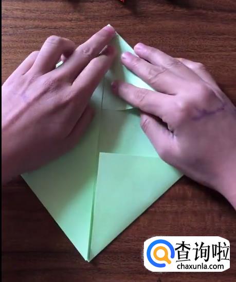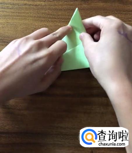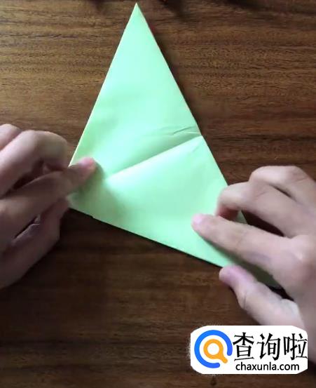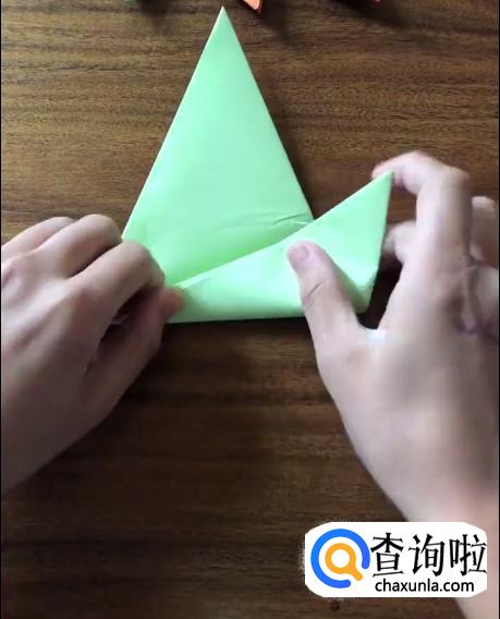 接下来我们将对向的角向内折起一个小三角并按压它,使其有一个明显的折痕。