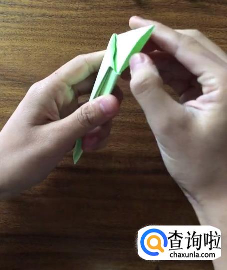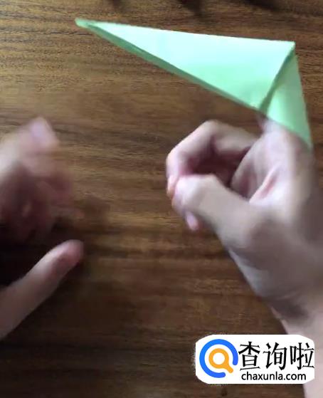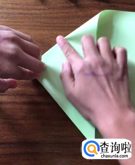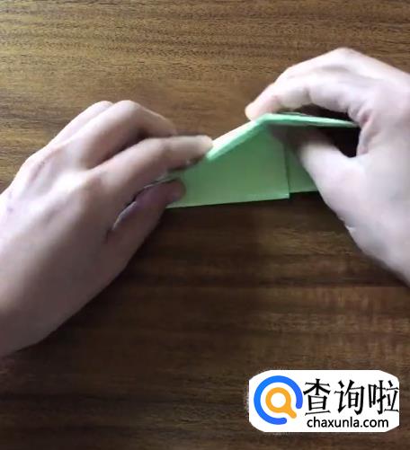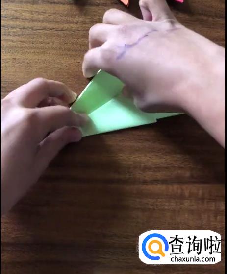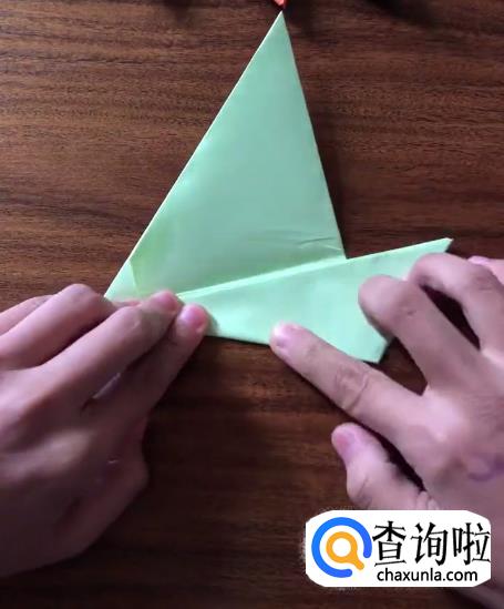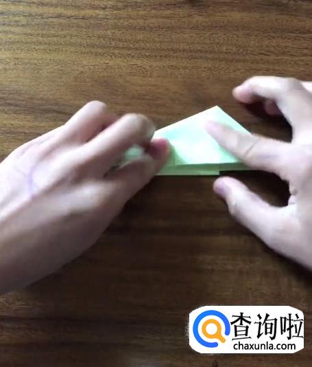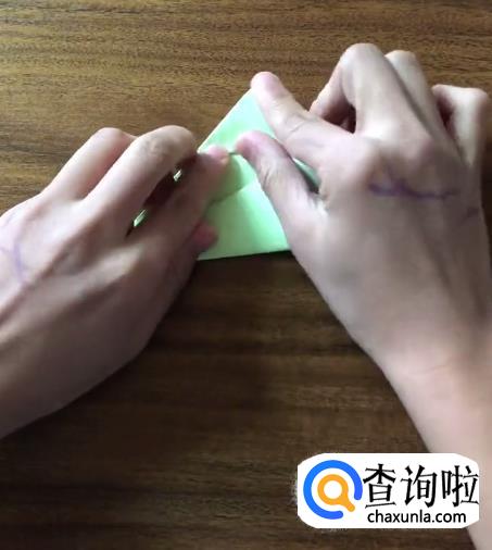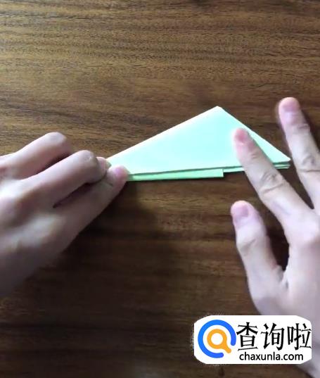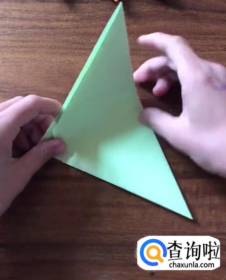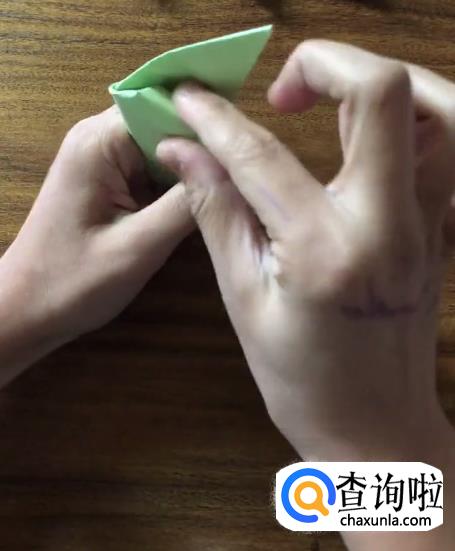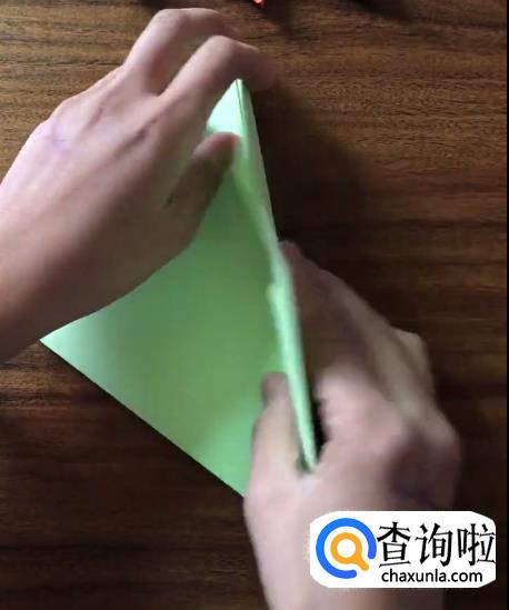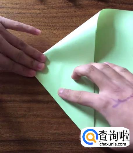 接下来我们将对向的角向内折起一个小三角并按压它,使其有一个明显的折痕。