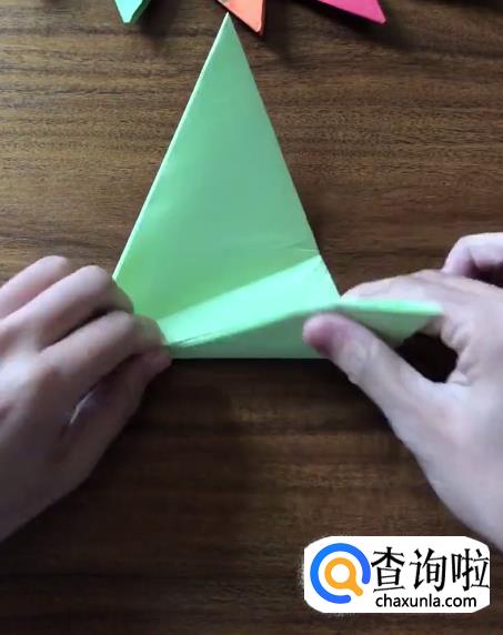 接下来我们把刚刚折好的小三角向内折叠。