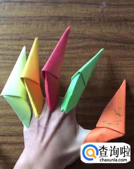 然后我们将其翻转过来面向自己,之后再将手指伸入纸指甲。