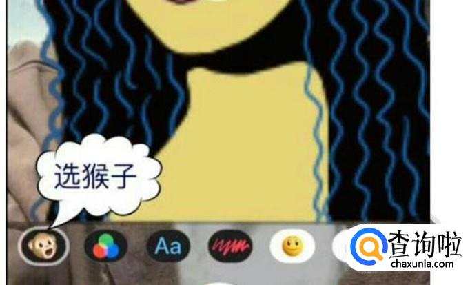 在弹出的多个图标中选择“小猴子”图标并点击,选择一个自己喜欢的动漫大头就可以开始拍摄了。
