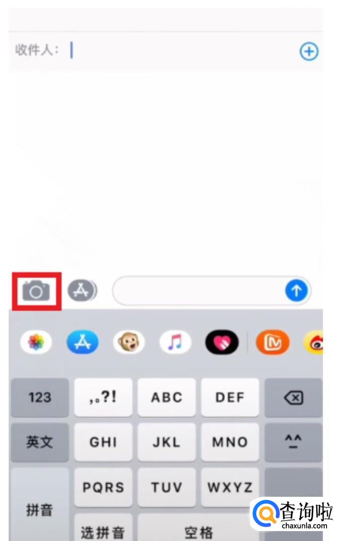 打开准备好的苹果手机,打开手机的短信功能,找到“拍照”按钮点击打开。