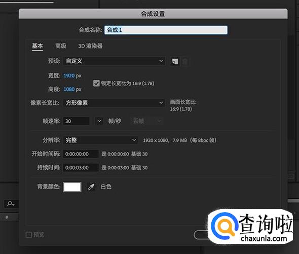 进入AE软件,创建一个新的合成,快捷键为CTRL+N。