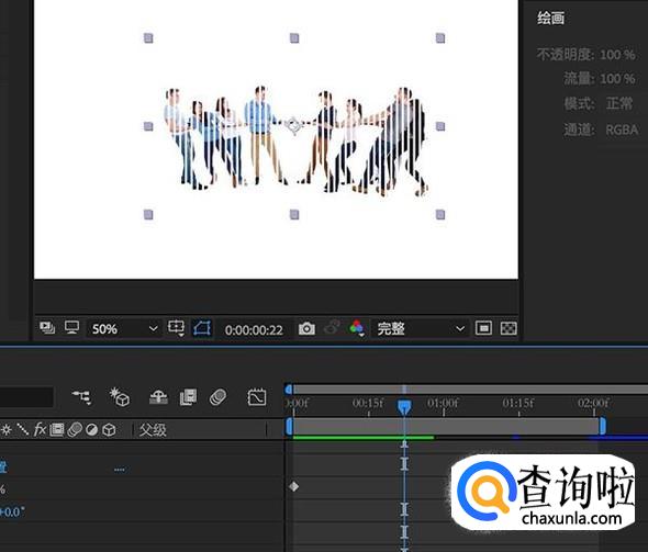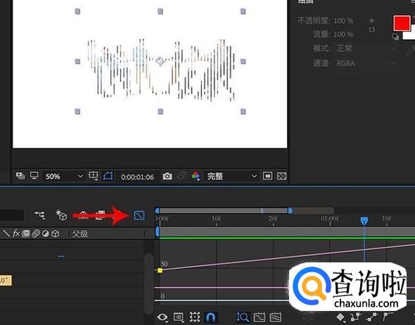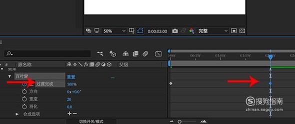 接着在终点的位置将“过渡完成”设置为100%,再次打上一个关键帧。