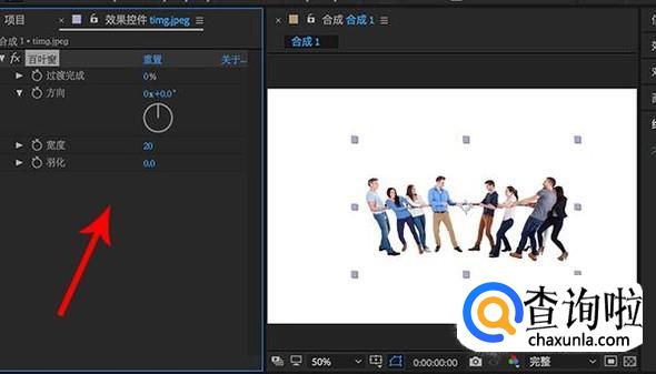 添加百叶窗效果之后,在上方效果控件中即可查看编辑面板,面板是汉化的,使用起来比较方便。