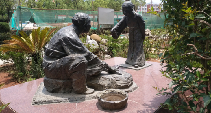 铁杵成针的故事:世代相传李白在山中读书的时候,没有完成好自己的学业,就放弃学习离开了。他路过一条小溪,遇见一位老妇人在磨铁棒,于是问她要磨成什么,老妇人说:“我想把它磨成针。”李白被她的精神感动,就回去完成学业。
