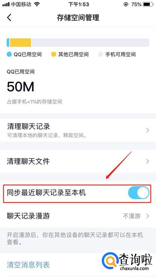打开“同步最近聊天记录至本机”按钮,聊天记录就可以恢复啦。
