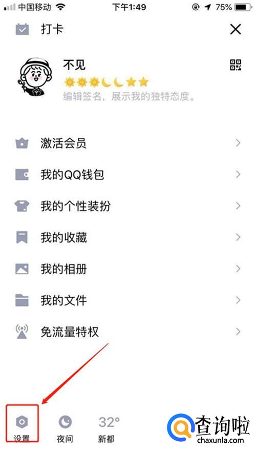 点击屏幕左上方的个人头像,进入如下图所示界面。