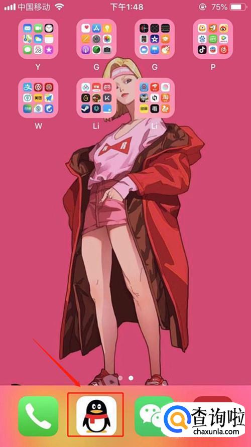首先点击桌面QQ图标。打开QQ。