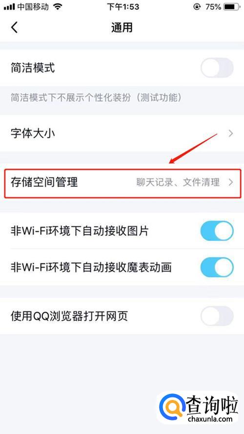 在点击“通用”弹出选项中选择“存储空间管理”。