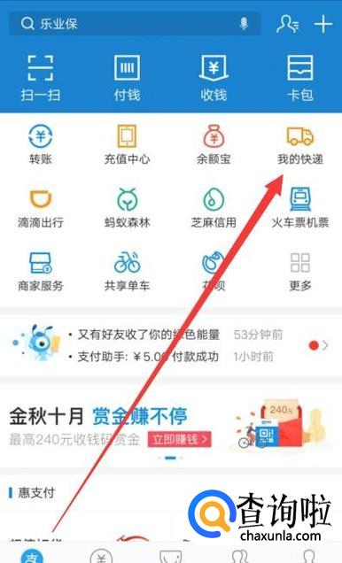 进入之后,点击“我的快递”,进入下一页面,如图所示。