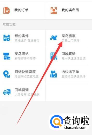 进入之后,点击“菜鸟裹裹”,进入下一页面,如图所示。