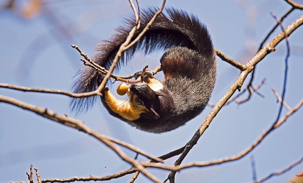 巨松鼠的运动神经十分发达,跳跃力强,即使是相隔2米的树枝,巨松鼠都可以轻易地一跃而过。巨松鼠还是典型的树栖动物,和鸟类一样,在树上筑巢,所以说如果看见树上有很大的一个窝,那可不一定是小鸟的哦。