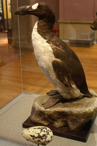 曾被称为“北极大企鹅”的大海雀(Pinguinus impennis),鸻形目(Charadriiformes),海雀科(Alcidae),大海雀属(Pinguinus)。