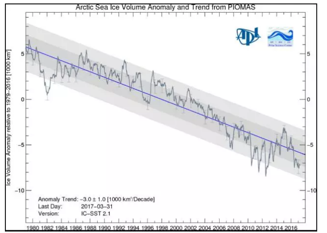 近期发表于《科学》杂志的一篇论文中,证明人类每排放一吨二氧化碳就会导致约三平方米的海冰消失。如果人类再向大气中排放7,000-10,000亿吨二氧化碳,以目前的速度来看只需20年至25年就可以让北极夏季海冰彻底消失!