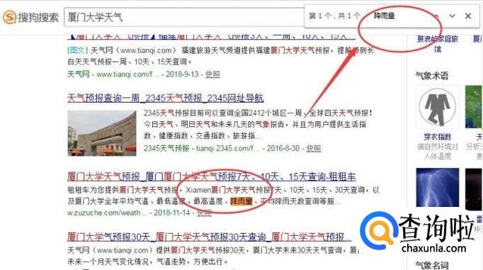 比如输入【降雨量】,它会把网页中相关词语的背景色改成橙红色,如下图所示: