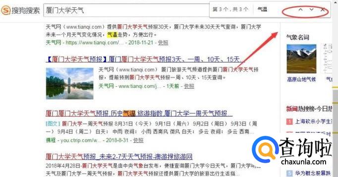 箭头往下可以搜索下一个关键词,往上的话,则是搜索上一个关键词,如下图所示: