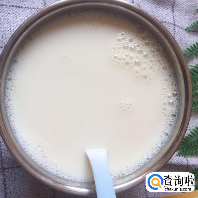 接着用勺子把酸奶粉和牛奶搅拌均匀,如下图所示。