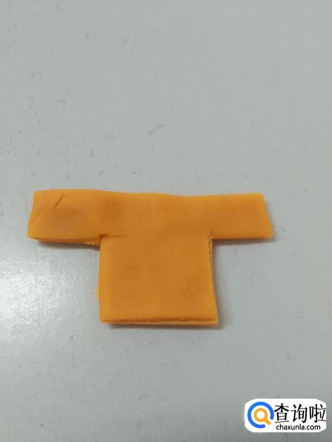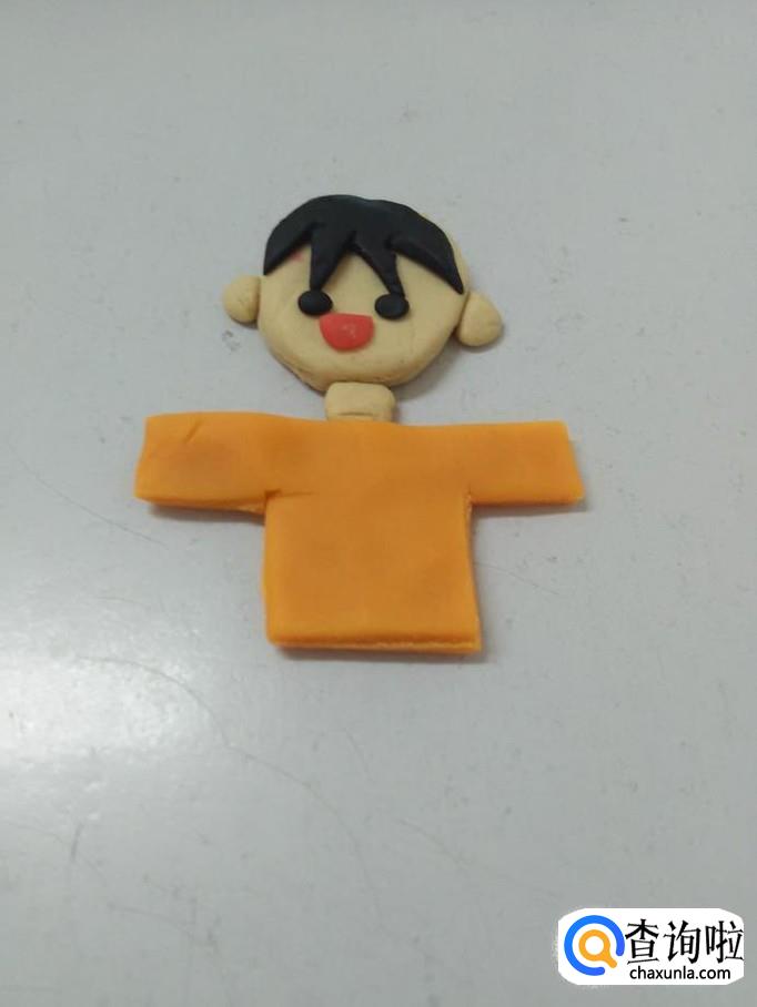 用桔色捏一个T字型,粘在脖子下面,当作人的上衣。