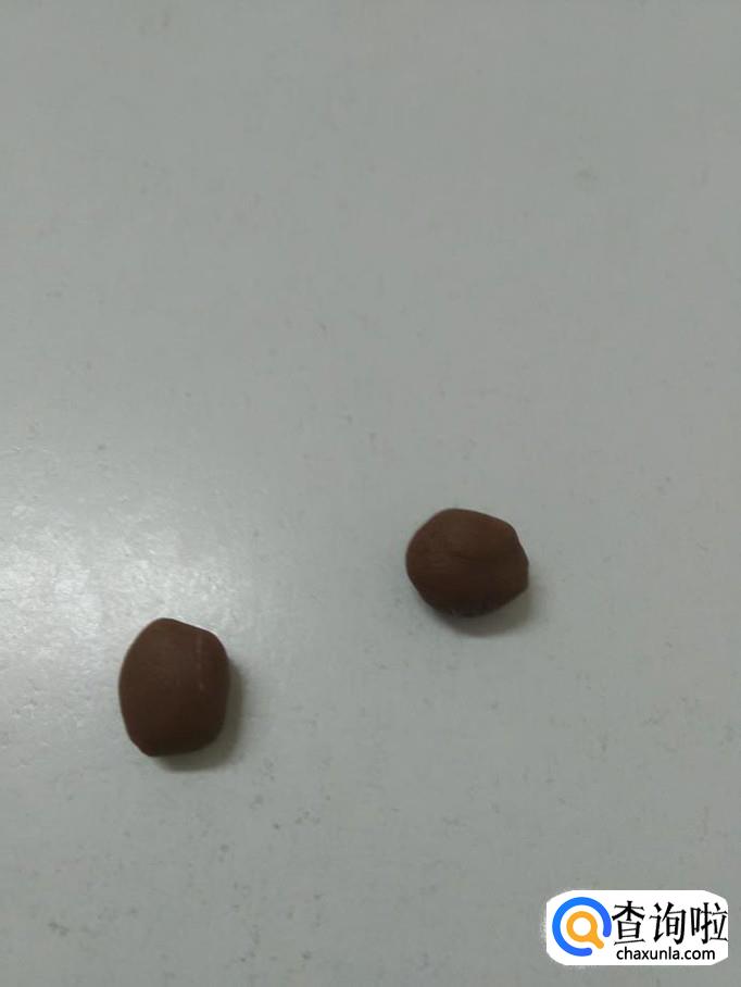 用红色捏一个半圆,粘在眼睛下面,当作嘴。