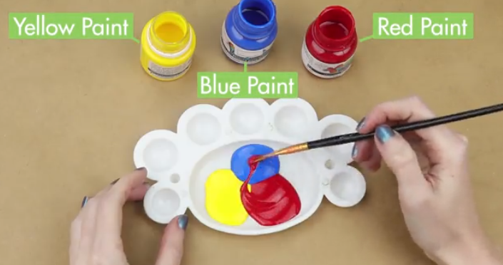 颜色的叠加可以生成新的不同的颜色,首先找出颜料中的黄色,就是三原色中的黄色就可以了,然后找出颜料中的红色,红色同样是三原色之一,比之前找出的黄色颜料稍微少一点,然后找出颜料中的蓝色,蓝色也是三原色之一,取一点点就可以了,不要多,最后将三种颜色混合在一起就是棕色。注意比例,慢慢试颜色,看你是想要浅棕色还是深浅色。一般是红多黄少偏深,红少黄多偏浅,蓝色一定要少。