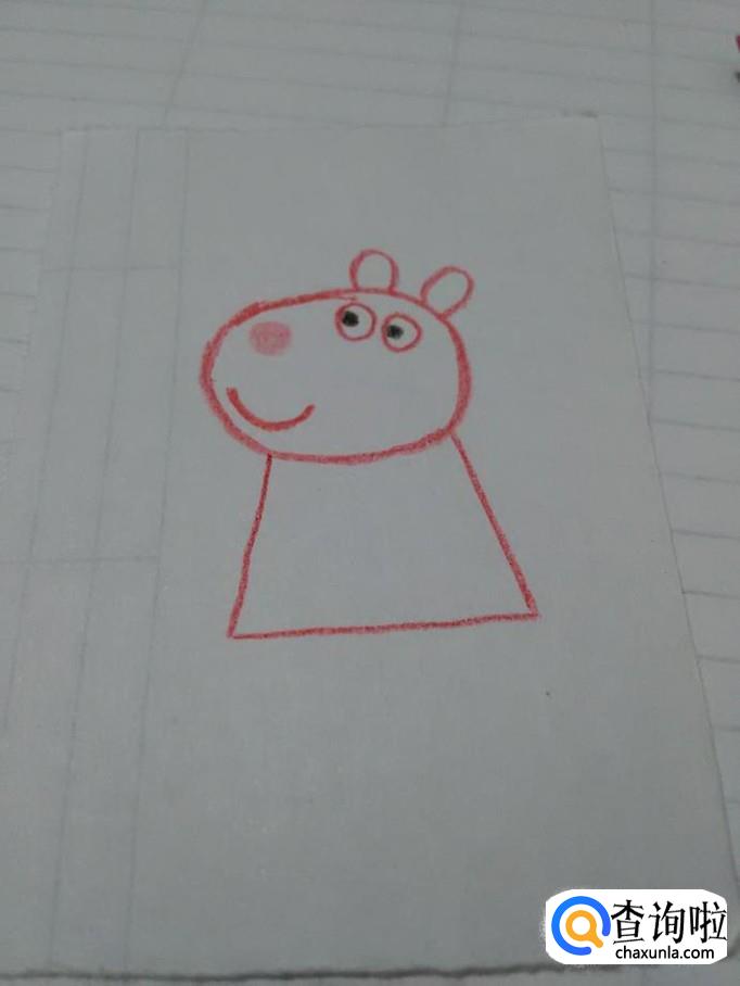 先用红笔在纸上画一个椭圆形,表示小羊苏西的头。