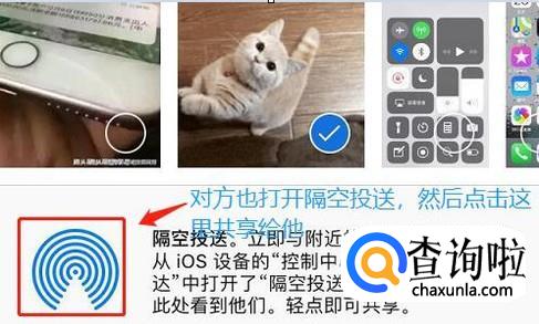 点击此图标,页面下方就会弹出一个窗口,最上面的就是隔空投送选项,然后让对方也按照以上的流程通用打开隔空投送,我们搜索到他以后,点击此处就共享成功了,不过前提条件是对方也是苹果手机,而且同时也打开了隔空投送选项;