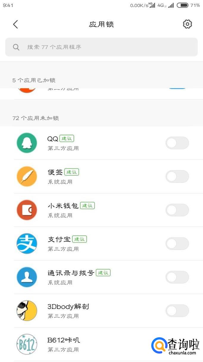 现在就可以设置锁定应用了,在右上角的啥子中还能设置解锁的安全性等。