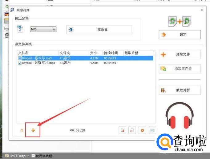 如果你想更改一下合并之后两首歌的播放顺序,可以点击界面左下角的箭头图标,点击箭头进行顺序切换。