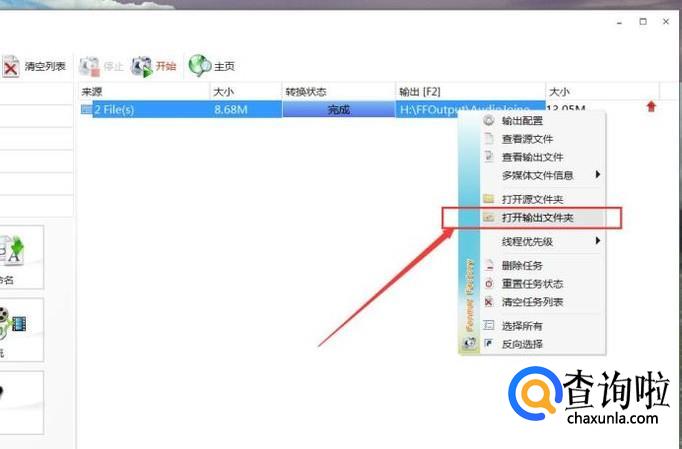 等软件界面提示音频文件合并完毕之后,右键点击该任务,然后选择“打开输出文件夹”即可在打开的文件夹中看到合并之后的音频文件。