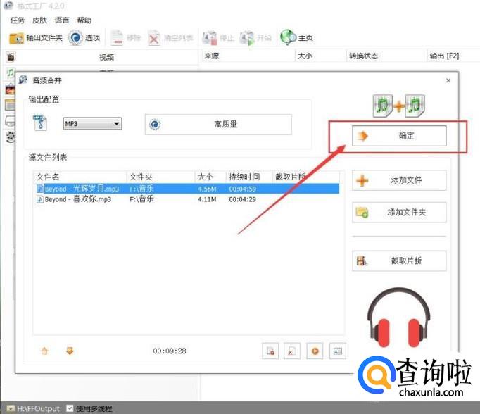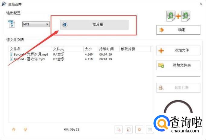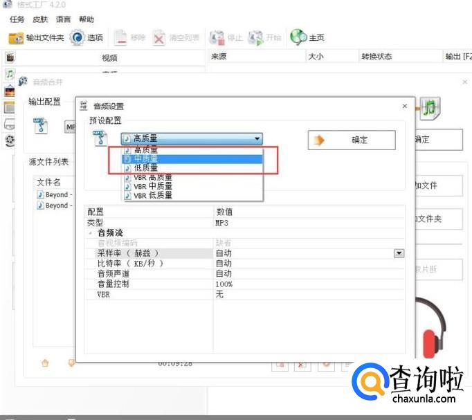 也可以对文件输出质量进行配置,默认选择的是高配置,你可以点击进行设置。