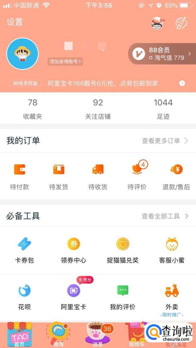 首先打开淘宝,在最下面的最右边点击“我的淘宝”,你可以看到“我的订单”,这里包含了你所有的订单消费,如图所示。