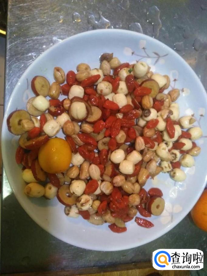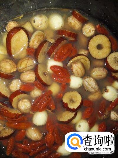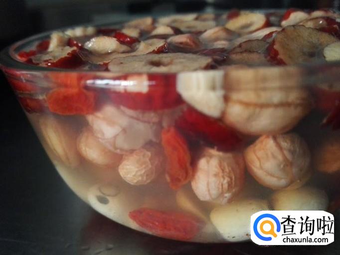 首先,我们可以提前把红枣,枸杞,葡萄干,花生,莲子泡一下。