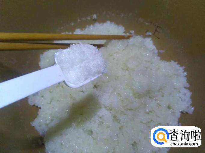 糯米蒸好后,盛出,放入适量白糖,搅拌均匀。