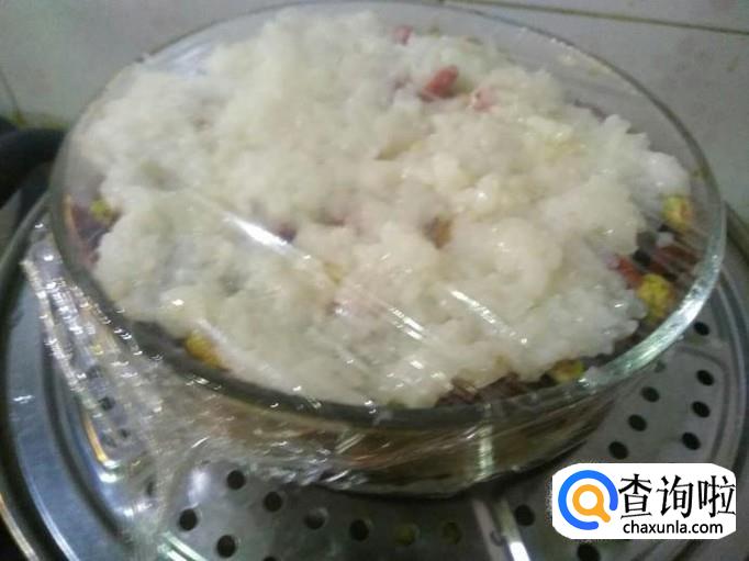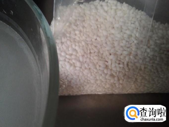 然后把糯米淘洗一下,放入电饭锅中蒸大约15分钟,备用。