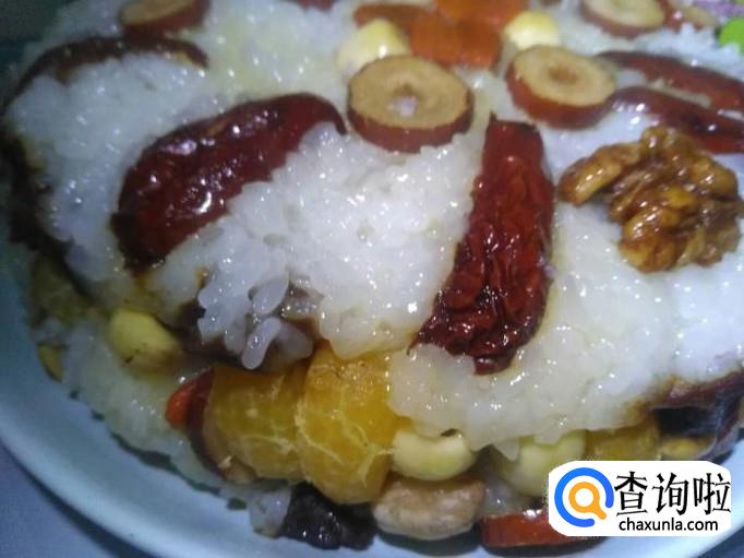 糯米 红枣 枸杞 葡萄干 花生 莲子 核桃仁 蜜橘 红豆沙 白糖