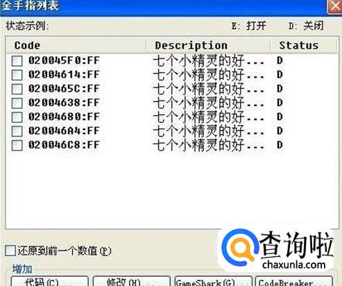点击金手指选项,在点击第二个选项。就会出现下面的图片。