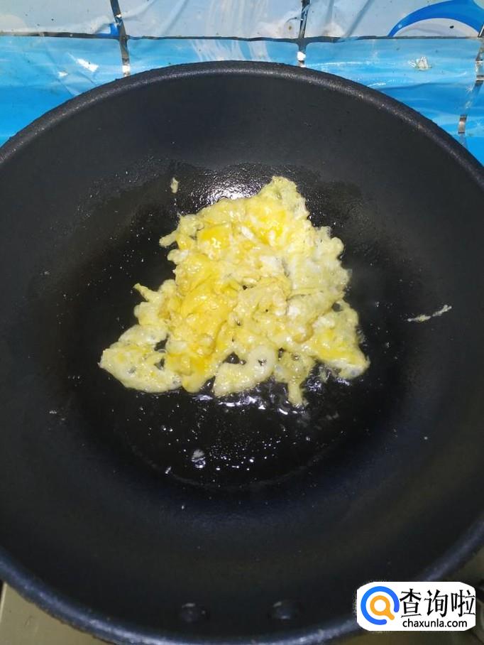 碗中打入一个鸡蛋,加入适量食盐打散,炒锅中放入适量油,油热后将鸡蛋液倒入锅中炒熟。