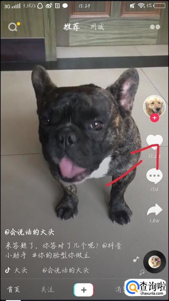 在推荐里你可以看到很多有趣的视频,下滑就行了。如果有你喜欢的视频,你可以点击旁边“爱心”这个图标,如图1箭头所示