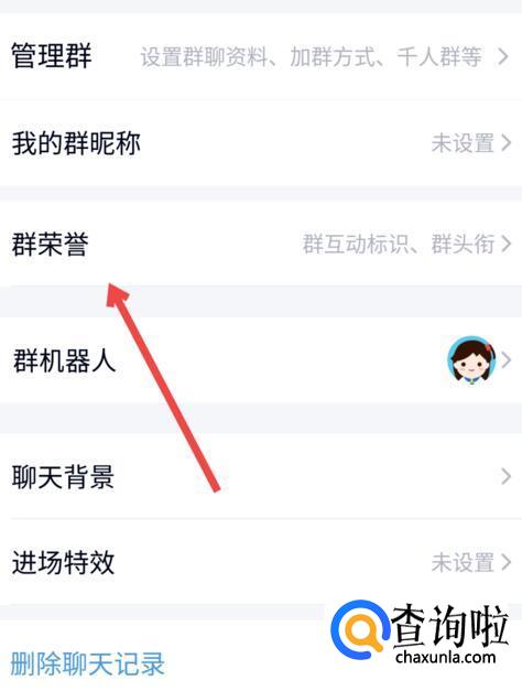 在弹出的页面中,选择”群荣誉”。