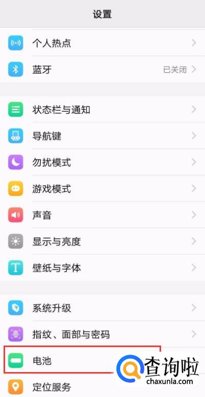 进入到手机的设置界面后,在界面中找到【电池】选项,并点击打开。