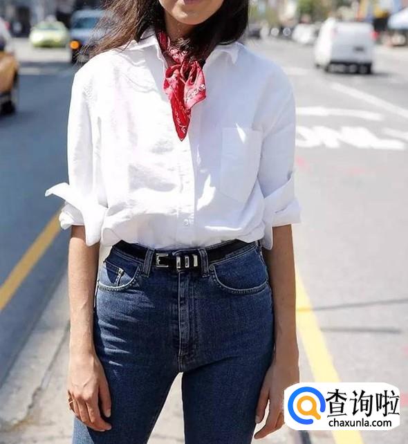 如果身穿基础款衣服,可以选择别致时尚的丝巾,这样就大大提高时尚度。基础款的白衬衫和牛仔裤经典百搭,但容易显得单调,这时不妨系一条个性红丝巾,整个人就脱颖而出。