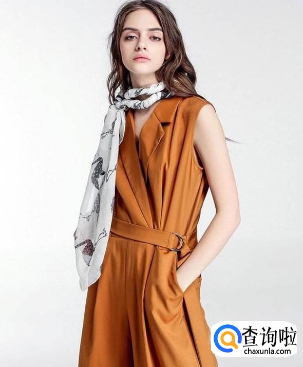 若衣服是亮丽或明亮的颜色,则可以系上素净的丝巾,这样就不怕hold不住大面积的亮色。如下图,姜黄色连衣裙搭配白底素雅丝巾,达到平衡色彩的效果。